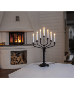 Vår eleganta metalljusstake Bore i svart. 7 led ljuskällor, soft glow ingår. Sprider ett härligt ljus och skapar julstämning.