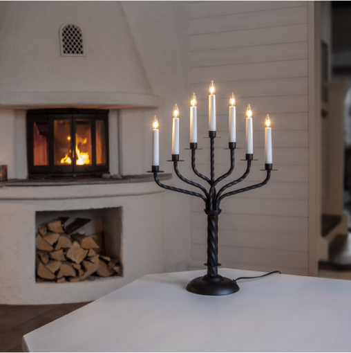 Vår eleganta metalljusstake Bore i svart. 7 led ljuskällor, soft glow ingår. Sprider ett härligt ljus och skapar julstämning.