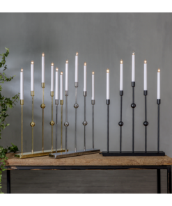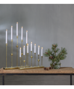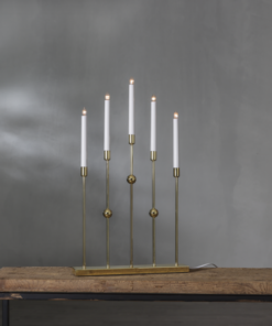 Stilren adventsljusstake i metall. Färgen är mässings. Ljusstaken har 5 ljuskällor med mysigt sken. Placera i ett förnster eller på en skänk, passar utmärkt till advent och jul.