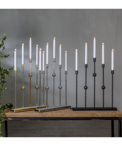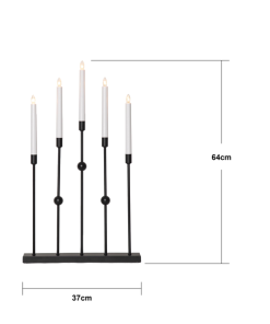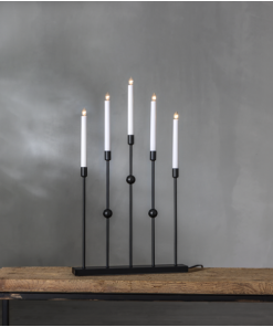 Stilren adventsljusstake i metall. Färgen är svart. Ljusstaken har 5 ljuskällor med mysigt sken. Placera i ett förnster eller på en skänk, passar utmärkt till advent och jul.