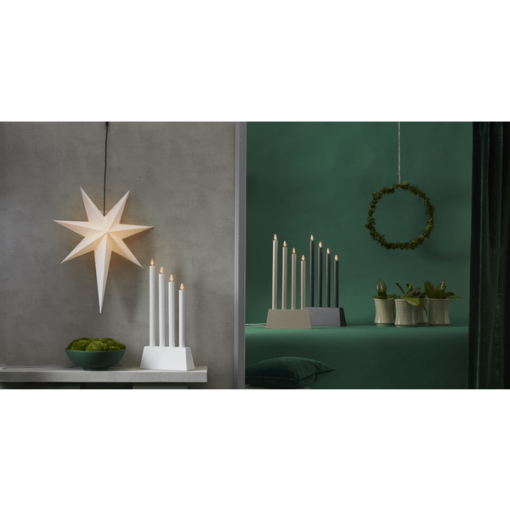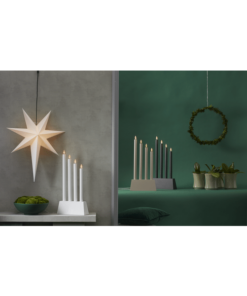 Vit stilig träljusstake med rejäl fot och raka former. Placera ljusstaken exempelvis i fönstret för att skapa en härlig adventstämning i hemmet.