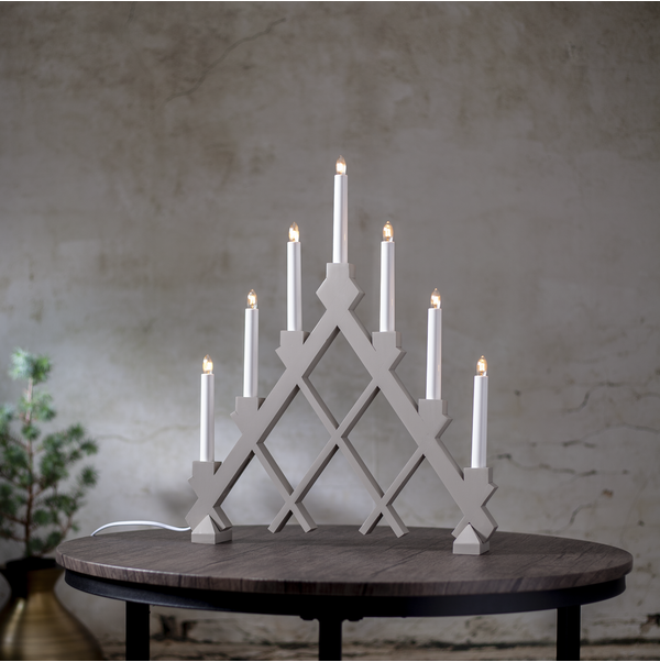 Rut är en vacker beigefärgad träljusstake. Det vackra rut-mönstret är iögonfallande. Med sina 7 ljuskällor skapar den en mysig belysning.