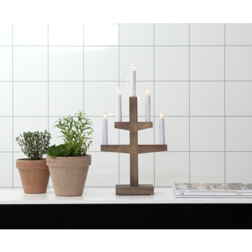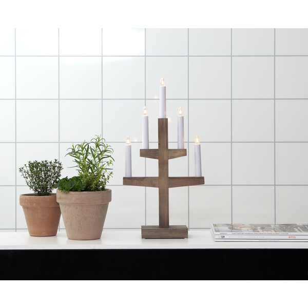 Brunbetsad träljusstake, 5 ljus. Placera ljusstaken exempelvis i fönstret för att skapa en härlig adventsstämning i hemmet. Denna produkt har FSC®-märkning.