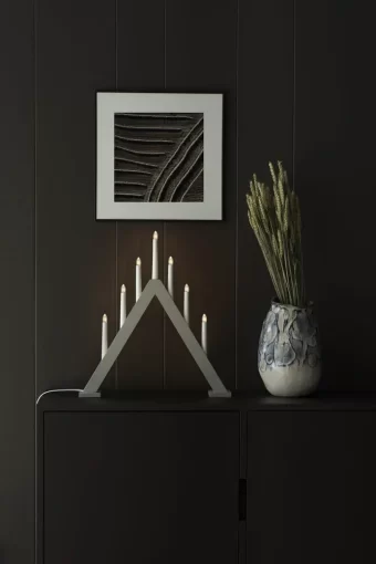 Elljusstake 7 ljus trä grå