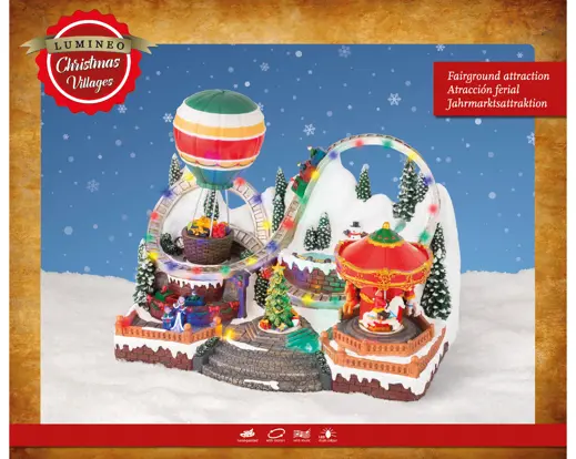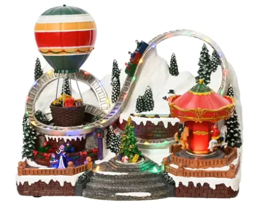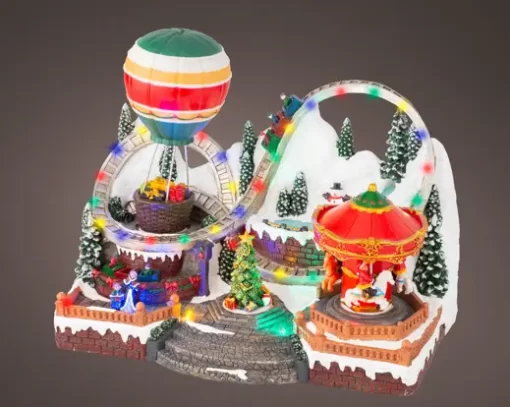 Fiberoptisk Julby med Musik Jinglebell. Roterande ponnykarusell och luftballong. Ger en mysig julstämning i hemmet.