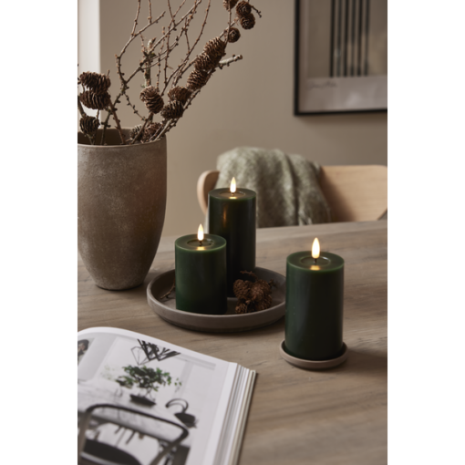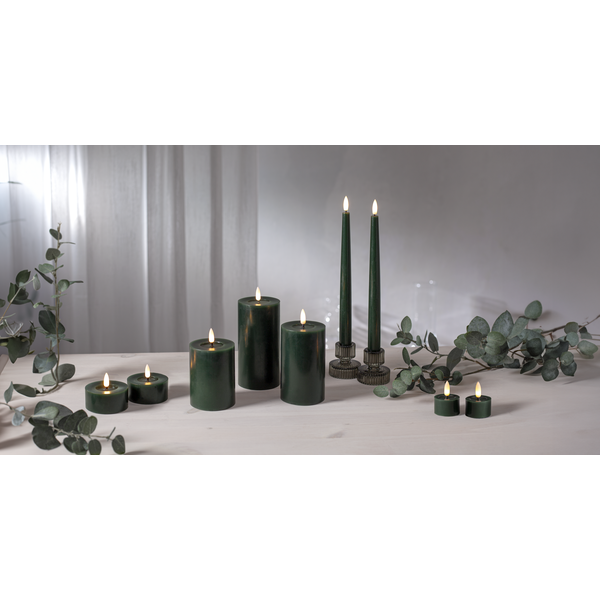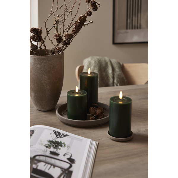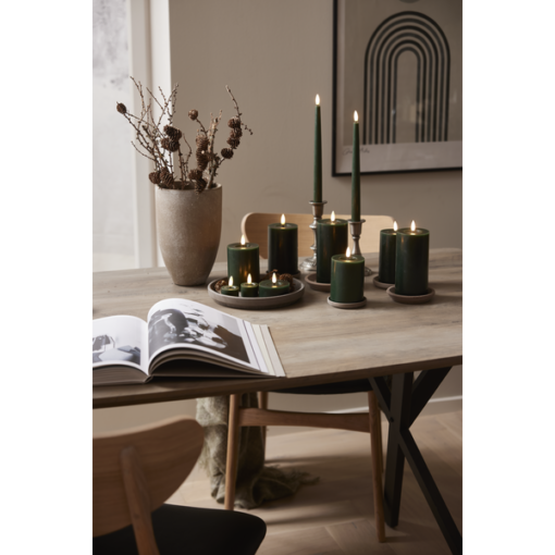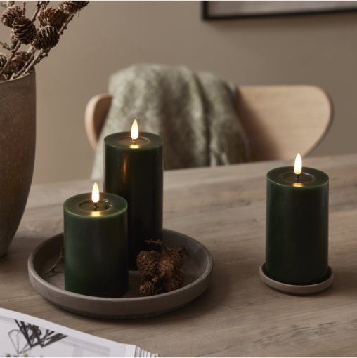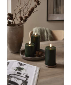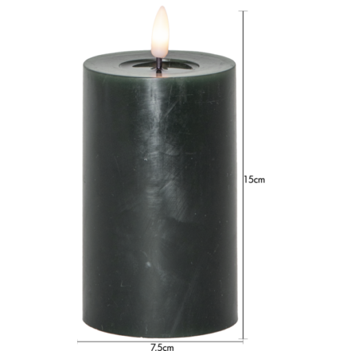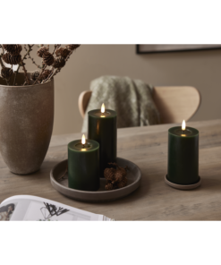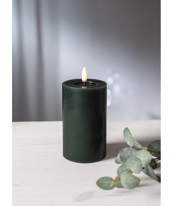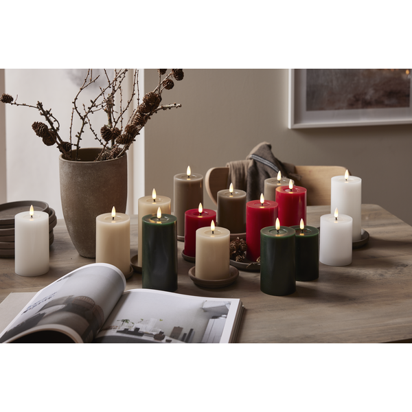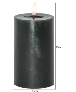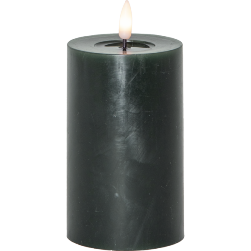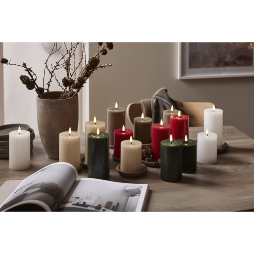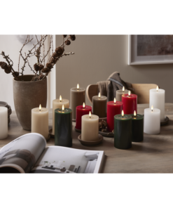 Flamme Flow är ett batteridrivet blockljus med vår naturtrogna låga Flamme med en brinntid på cirka 1500 timmar. Detta stearinljus har en blank nedsänkning under lågan, denna yta ser ut som flytande vax vilket gör ljuset än mer naturtroget. Ljuset är cirka 7,5cm i diameter och höjden 12,5cm för vax delen och cirka 15cm med lågan. Detta ledljus blir en vacker dekoration, både ensam och i grupp ihop med övriga ljus från vår Flamme serie. Den har timerfunktion och när brytaren är på timerläget lyser ljuset i ca 250 dagar med en vacker realistisk låga i varmvitt. Den drivs av 2 AA batterier, dessa ingår ej. Undvik att ställa ljusen i direkt solljus då de kan smälta och missfärgas av värmen.