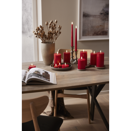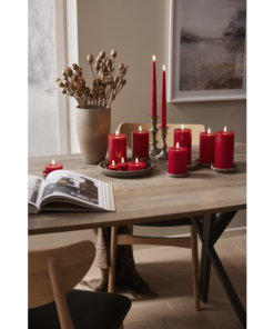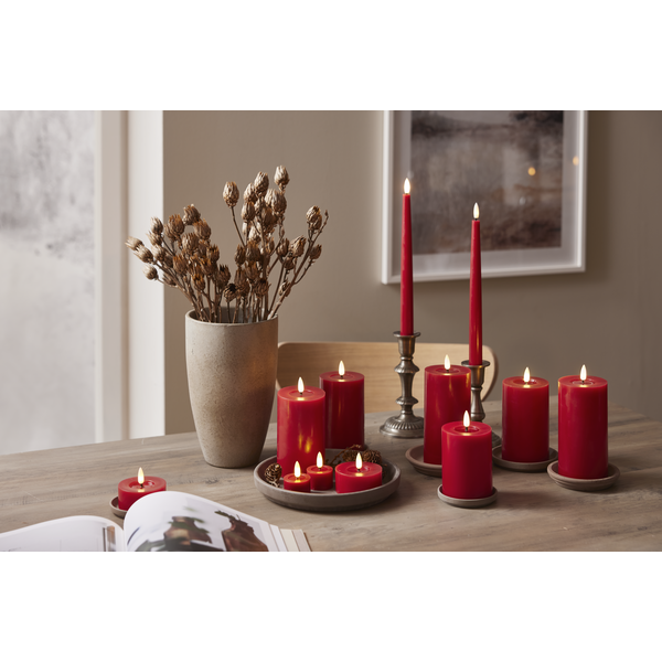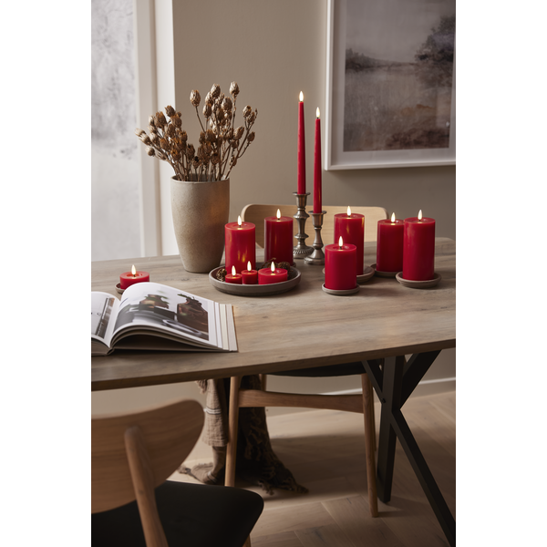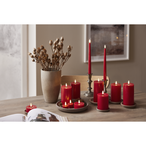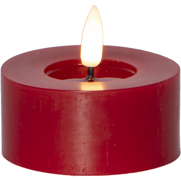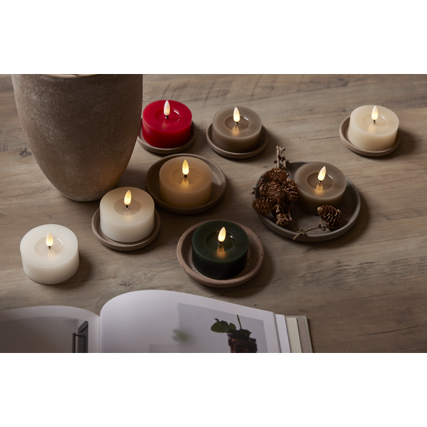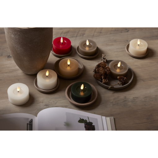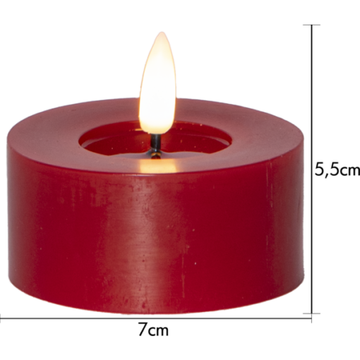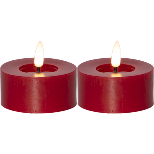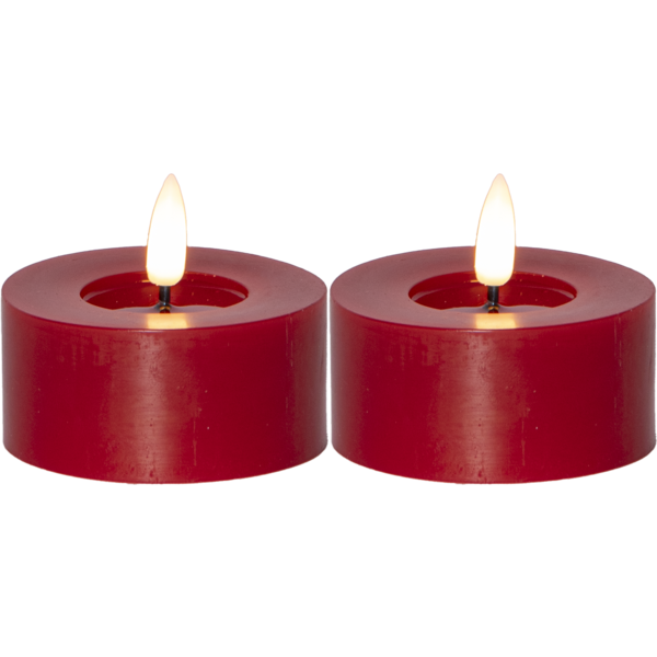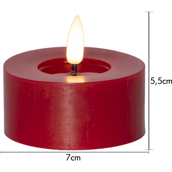 Flamme Flow är ett 2 pack batteridrivet värmeljus i en större storlek; 7×5,5cm inklusive lågan. Stearinljuset har en blank nedsänkning under lågan, denna yta ser ut som flytande vax vilket gör ljuset än mer naturtroget ihop med den naturtrogna Flamme lågan i varmvitt. Detta ledljus blir en vacker dekoration, både ensam och i grupp ihop med övriga ljus från vår Flamme serie. Den har timerfunktion och när brytaren är på timerläget lyser ljusen i ca 65 dagar, väljer man on läget så lyser ljusen i ca 400 timmar. De drivs av 2 AAA batterier, dessa ingår ej. Undvik att ställa ljusen i direkt solljus då de kan smälta och missfärgas av värmen.
