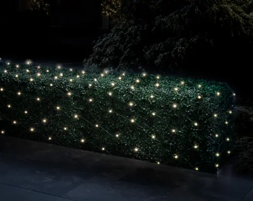 Snyggt och prisvärt ljusnät från Kaemingk. Tåligt och klarar det nordiska klimatet bra. Timer 8 timmar och lyser med ett behagligt varmvitt sken.
