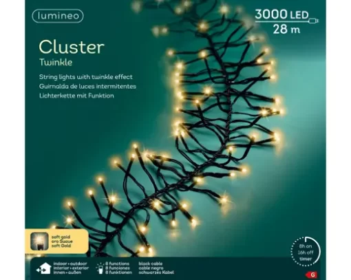Ljusslinga Cluster 3000LED 28M Soft Gold
