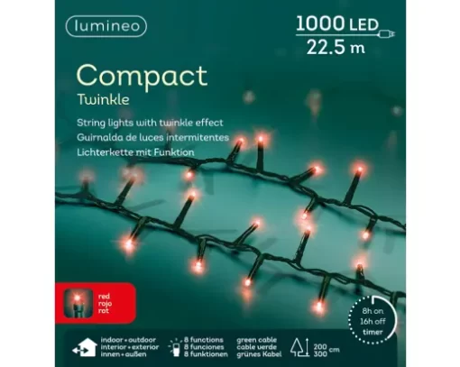 Compact är en populär slinga från Kaemingk. Tålig och klarar det nordiska klimatet bra. Dimbar, 8 glittrande effekter och timer på 8 timmar. Ger ett effektfullt intryck i trädgården.
