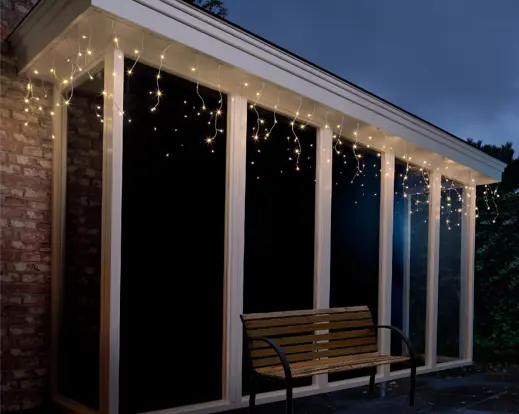 Snygg och prisvärd istappsslinga som tål det nordiska klimatet år efter år. 8 olika gnistrande funktioner och timer på 8 timmar. Ej vidarekopplingsbar.