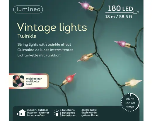 LED vintagelampor med 8 funktioner och blinkande effekt för utomhusbruk. Snygg att dekorera med i julgranen eller runt altanräcket.