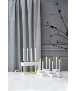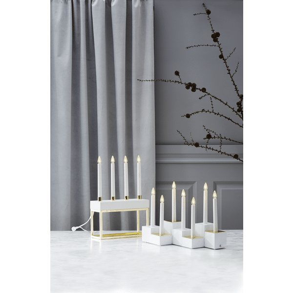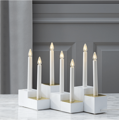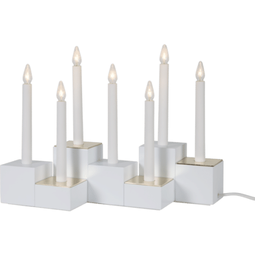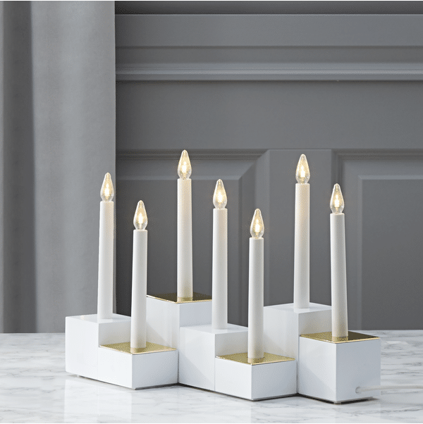 Vacker träljusstake med 7 LED-ljuskällor. Ljusstaken sprider mysigt stämning med varmvitt sken. Ljusstaken är vit och har en E10 sockel.
