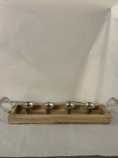 Ljusstake trä med 4 ljushållare i metall handtag