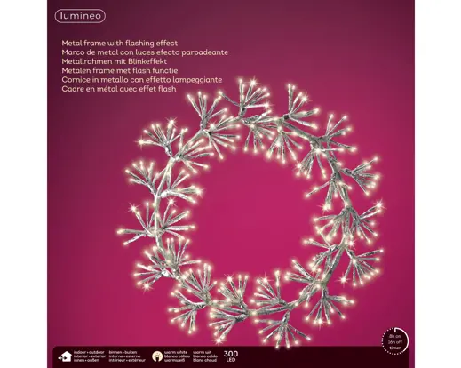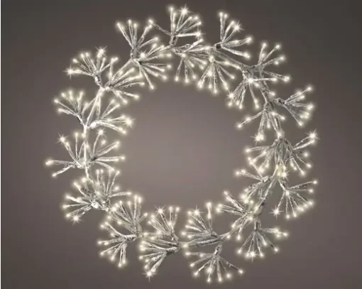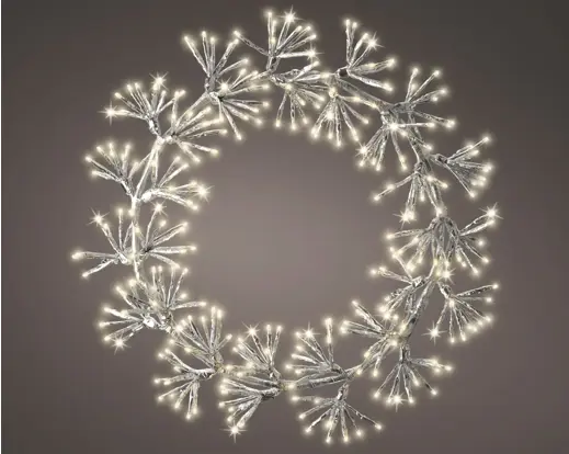 Vacker och glittrande krans som lyser upp fint i ett varmvitt sken. Timer 8 timmar.