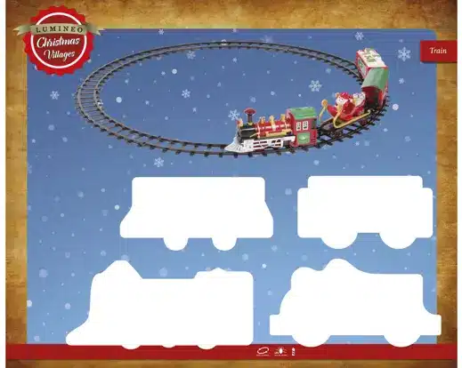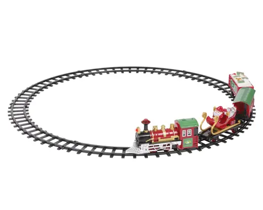 Mysig och smidig tågbana som tuffar runt på rälsen. Drivs med AA batteri.