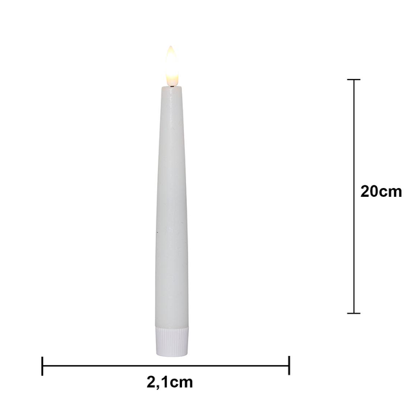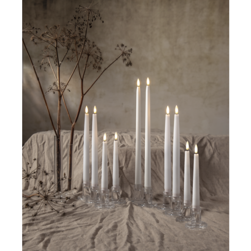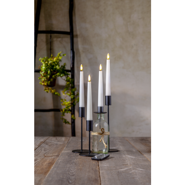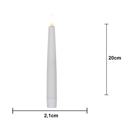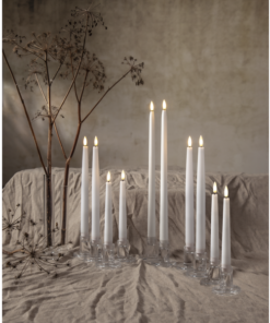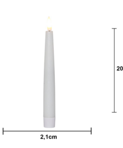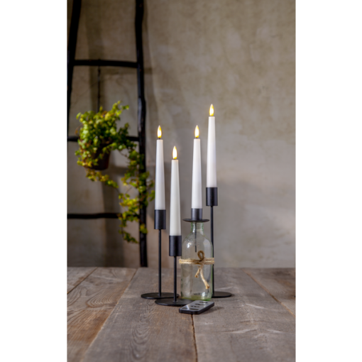 4p antikljus i höjden 20cm, med slät yta och en låga som ger ett naturtrogen sken och utseende. Fjärrkontroll ingår. Max 5 set (20 ljus) kan styras av samma fjärrkontroll. Avstånd max 5m.