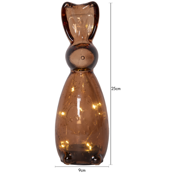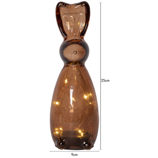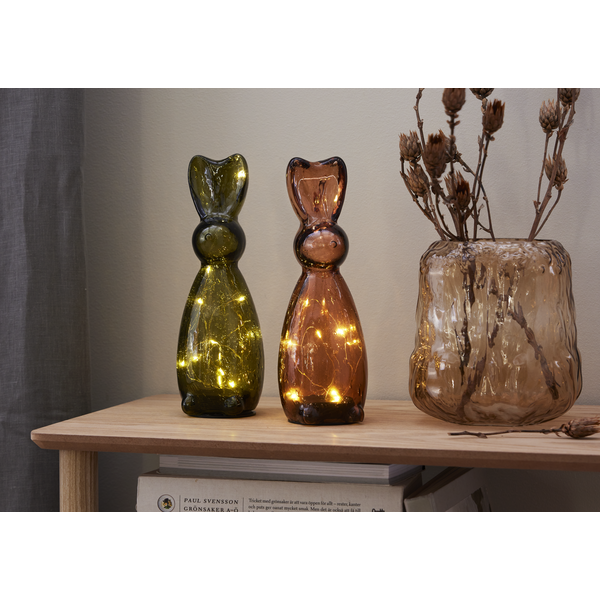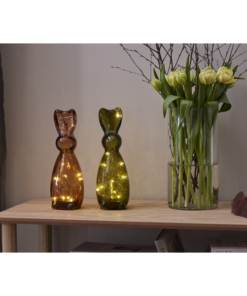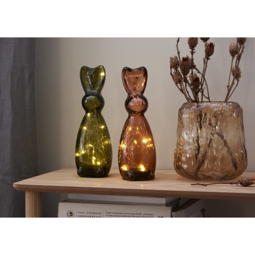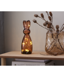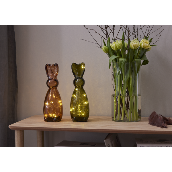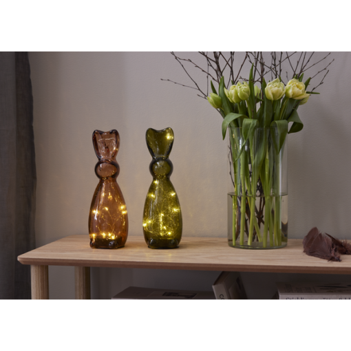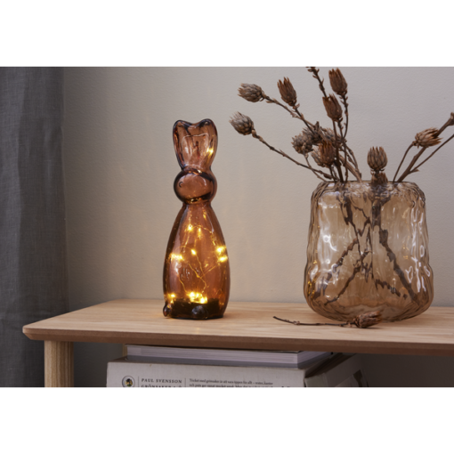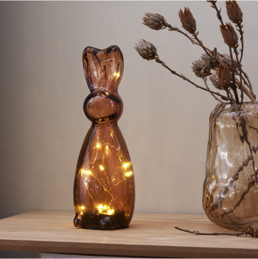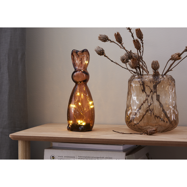 Stilfull bordsdekoration i brunt glas. Placeras på bord eller bänk och ger ett vacker sken. En fin dekoration för påskdukningen men passar att ha framme hela året. Batteridriven med timerfunktion för inomhusbruk.