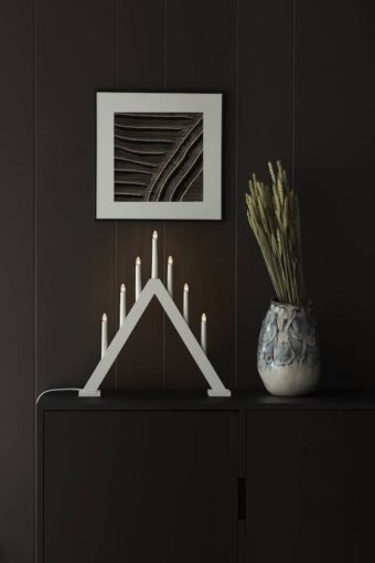 | Artikelbeskrivning | Elljusstake 7 ljus trä matt vit, strömbrytare 230V/IP20 |