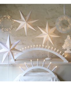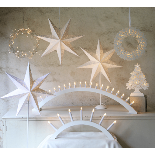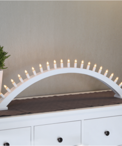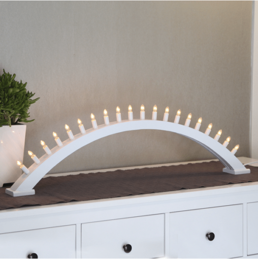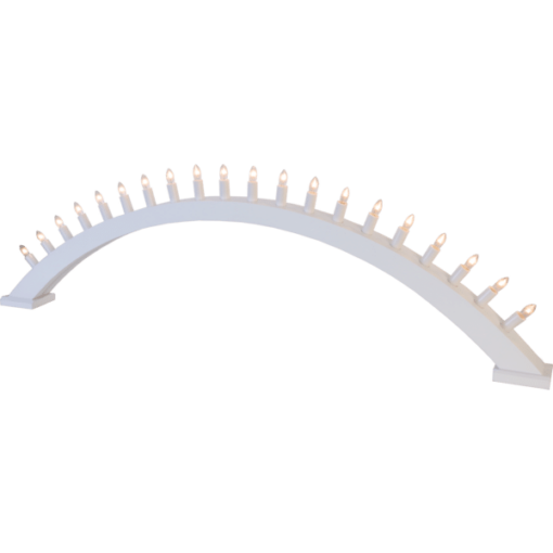 Vit träljusstake med 20 ljuskällor. Ljusstaken är formad som en båge och ger ett elegant intryck. En underbar adventsljusstake som sprider härlig julstämning i hemmet.