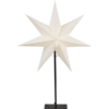 Vit stjärna på fot med svart textilkabel. Elegant stjärna att dekorera med i hemmet. Stjärnan har plats för en ljuskälla. Höjden är 55cm.