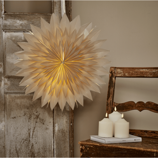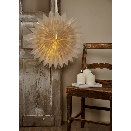Vacker semi transparent pappers stjärna. Härlig dekoration till jul för att skapa den bästa julstämningen både i fönster och mot en vägg. Köp till ett sladdställ och en ljuskälla för att lysa upp stjärnan.