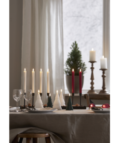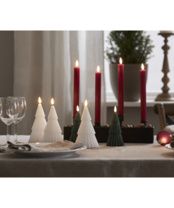 2 pack djupt röda antikljus i vår Flamme Stripe serie, gjorda i vax i med en räfflad-randig yta. Ljusen har en mycket naturtrogen låga som lyser med varmvitt sken. De har timerfunktion vilket gör att ljusen lyser i 6h per dag i ca 30 dagar. De drivs av 2 AAA batteri för varje ljus, dessa ingår ej. Dessa ljus har en silikonbelagd fot som gör att ljusen står stadigare i ljushållaren.
