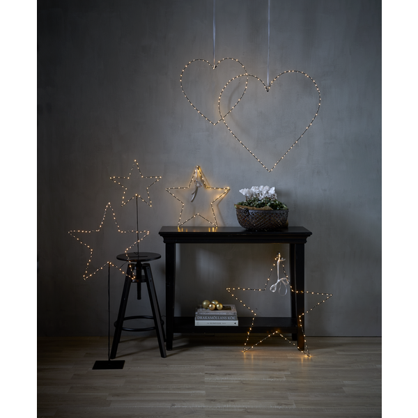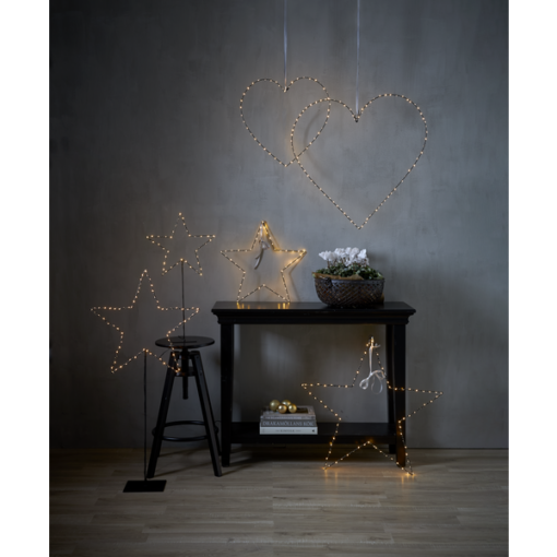 Dekorativ metallstjärna med dew drop ljusslinga för inomhusbruk. Stjärnan har 50 LED-ljuskällor med varmvitt sken. Fin dekoration att hänga i fönstret och på väggen.