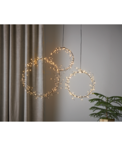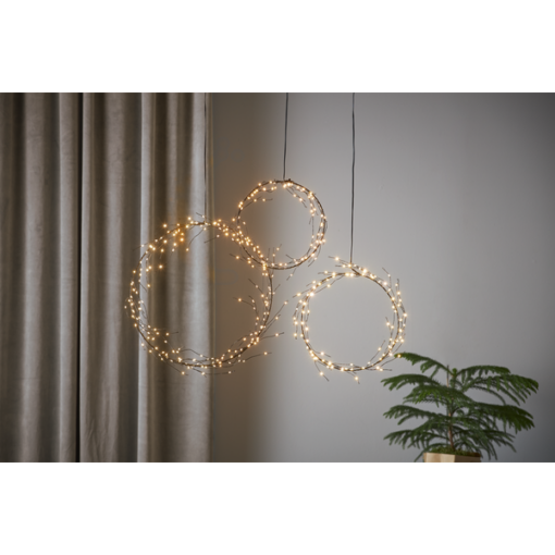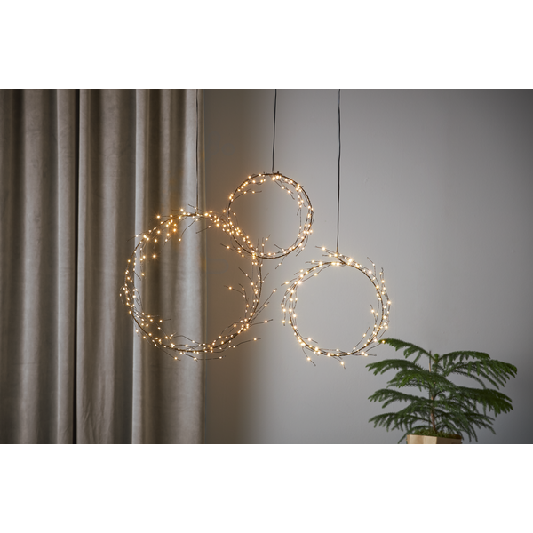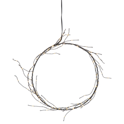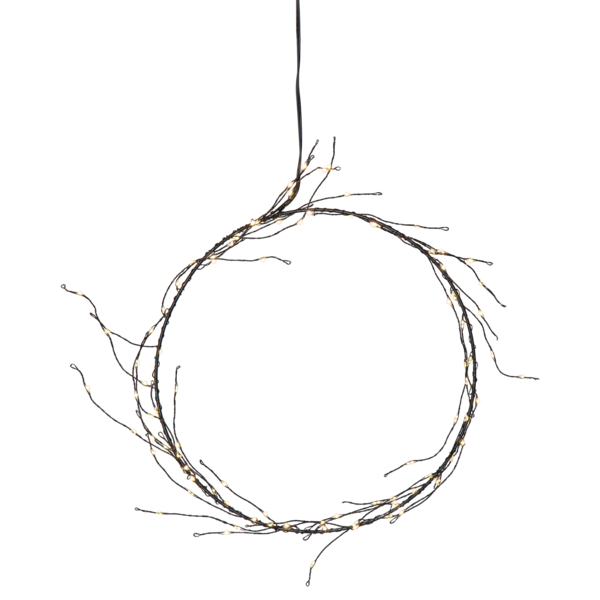 Stämningsfull krans i svart, 95 små led punkter lyser fint. Dekorerar till jul eller varför inte så fort den mörka årstiden börjar.