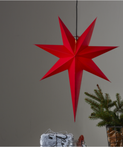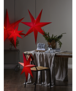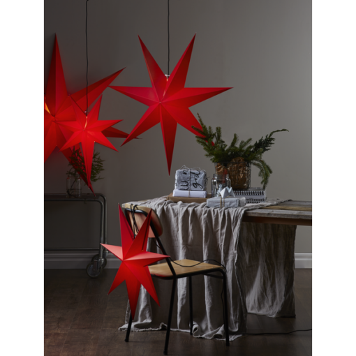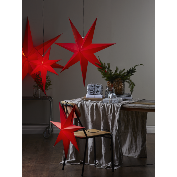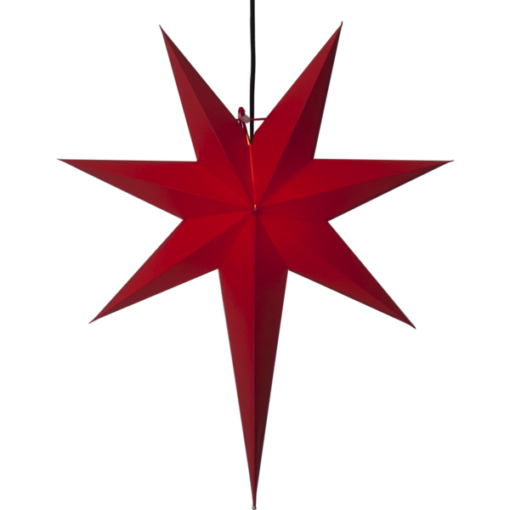 Rozen adventsstjärna 55cm röd med upphäng skapar en mysig advents och julkänsla med sin fina djupröda färg, välj passande glödlampa som tillbehör.
