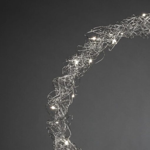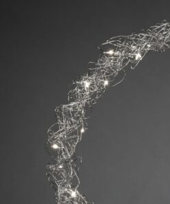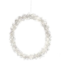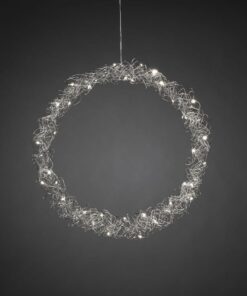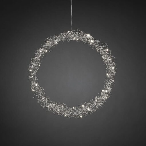 • Krans för inomhusbruk med 40st varmvita LED-lampor. Silverfärgat stål. Passar lika bra i fönstret som på dörren. Drivs med 4,5V transformator. Diameter 45cm.