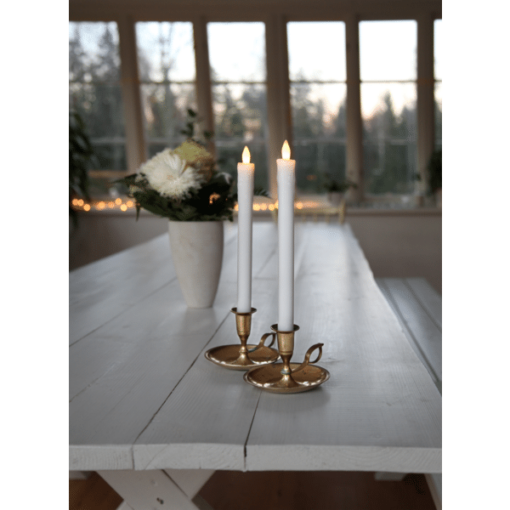 Fantastiskt fina antikljus i vitt. Ljusen är batteridrivna och 25cm höga. Perfekta att ha på matbordet eller i entrén för en hemtrevlig och varm känsla. Kommer i 2-pack och har en Push ON/OFF funktion.