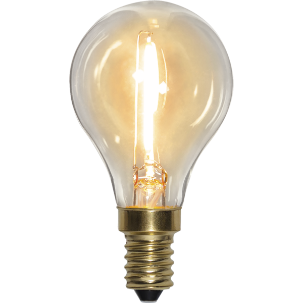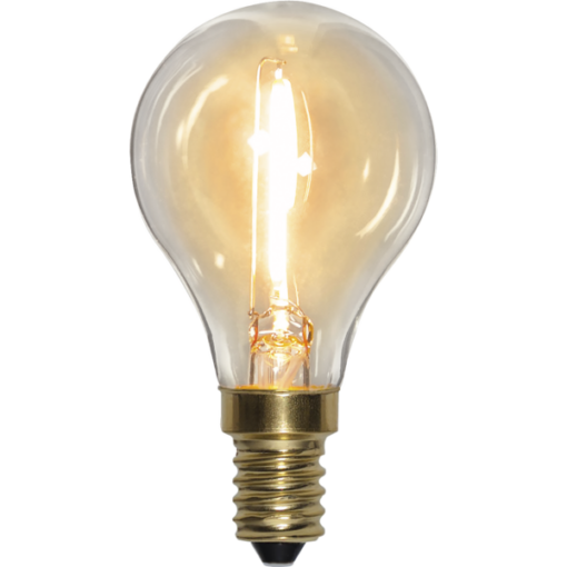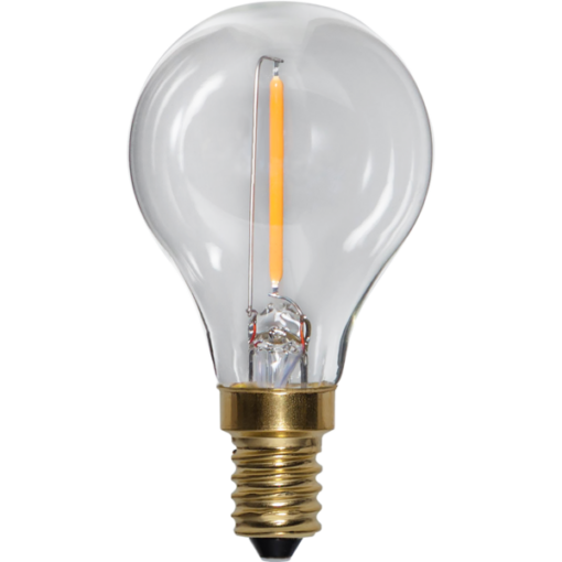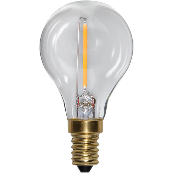 Dekorativ klotlampa med LED. Denna dekorativa ljuskälla har varmt och mjukt sken. Färgtemperaturen är 2100K och den har E14-sockel.