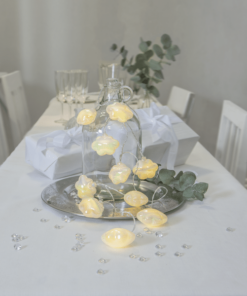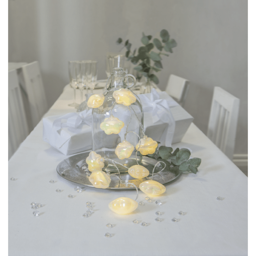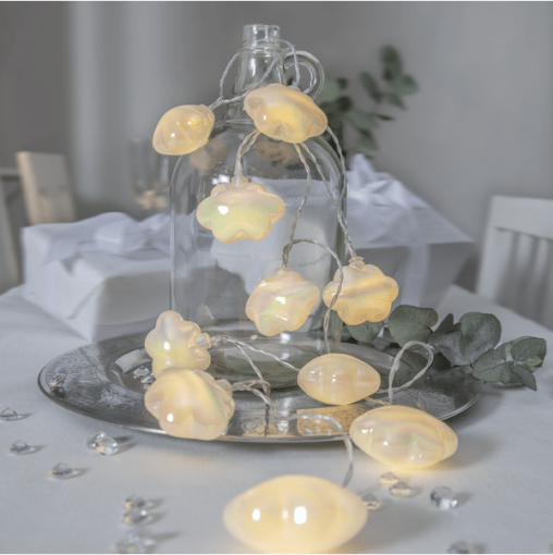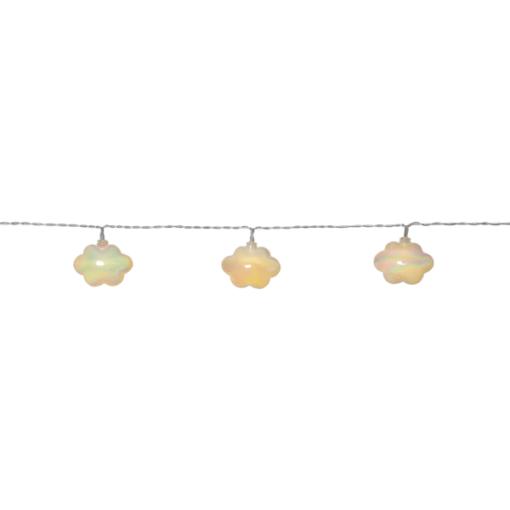 Ljusslinga dekorerad med 10 st moln. Placera ljusslingan på ett bord, hängandes på en vägg eller i granen. Dekorativ inredning som ger ett mysigt sken i hemmet. Batteribox med timerfunktion