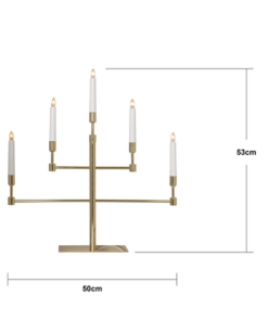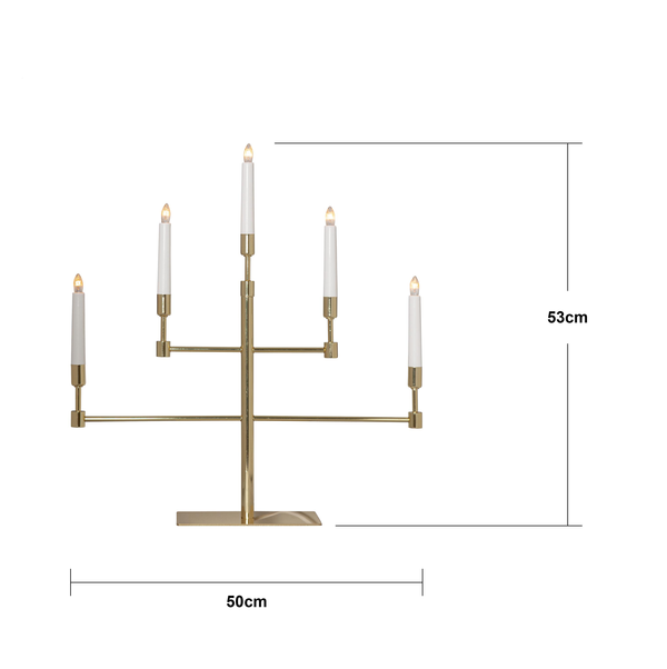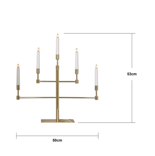 Modern adventsljusstake i mässings färg, tillverkad i metall. Dekorera med till advent och jul, placera den i ett fönster eller på en skänk.