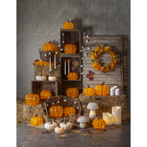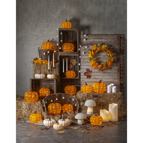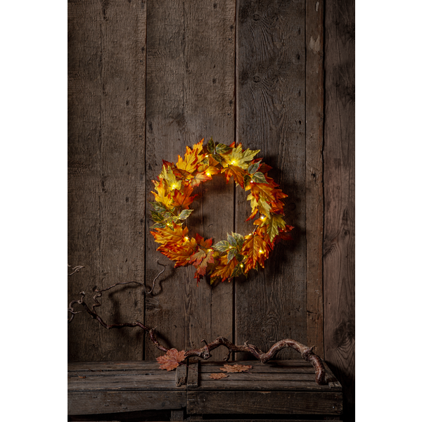 Vacker krans i höstens färger med 30 varmvita dewdrop som ger ett behagligt sken. En fin krans att dekorera med på en ytterdörr, i ett fönster, eller som en liggande dekoration på ett bord. Slingan drivs av 3 AA batterier och har en inbyggd timer. Batterier ingår inte. Se även andra produkter från vår Harvest Season serie.