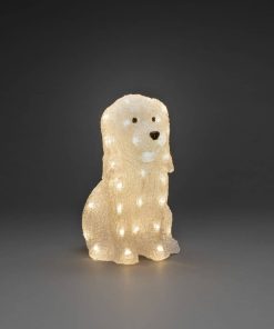 Sittande Hund akryl 40 varmvita LED 31cm 24V/IP44, fin att placera på trappan eller balkongen, skapar fint sken.