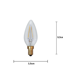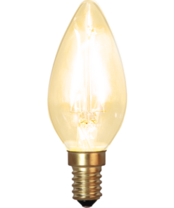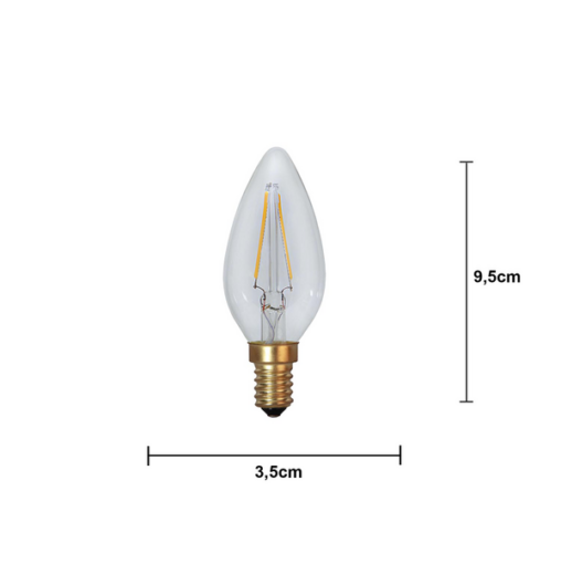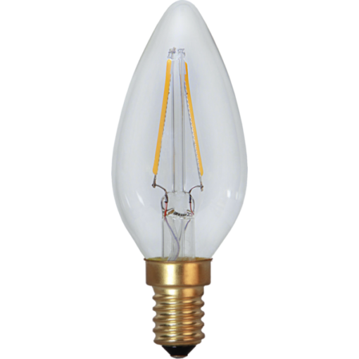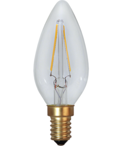 Kronljuslampa med klart glas. Den lyser med ett varmt och mjukt sken. Färgtemperaturen är 2100K och lampan har E14-sockel.