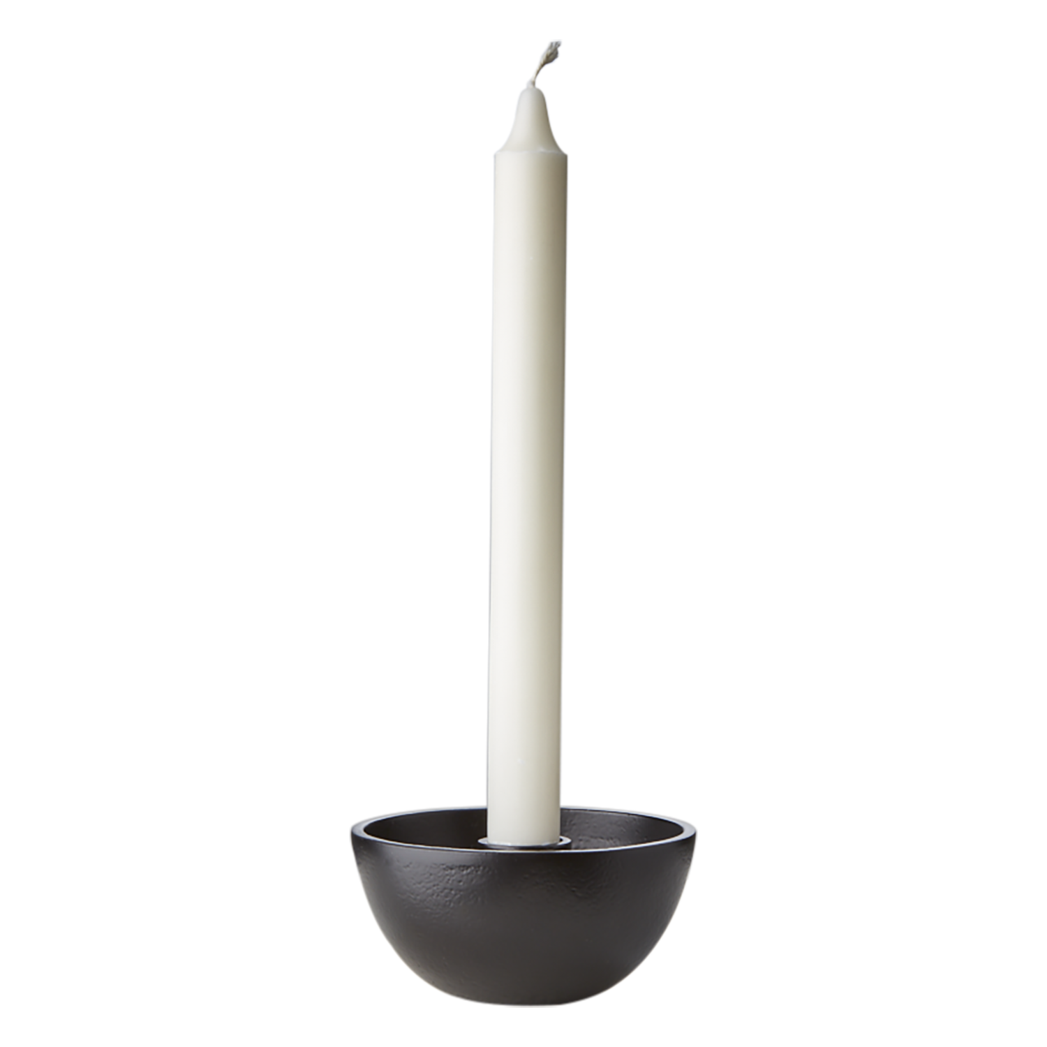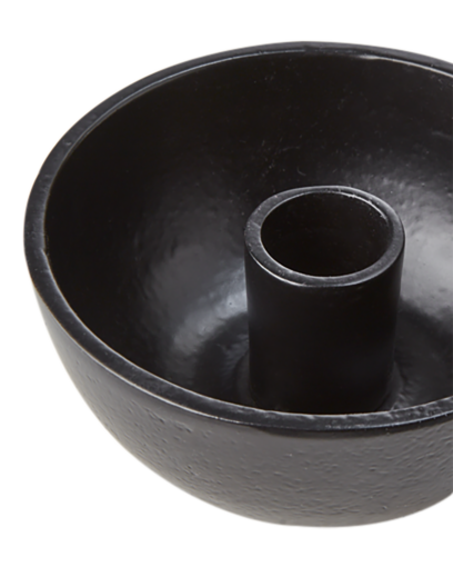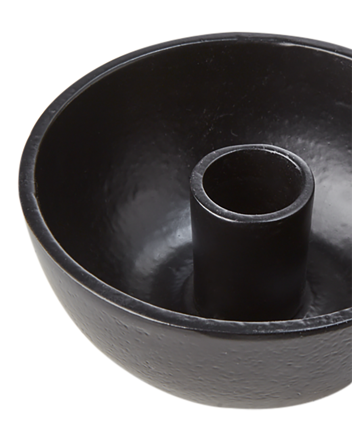 Liten och nätt ljusstake i svart aluminium. Passar för 1 kronljus. Snygg att placera på fönsterbrädan eller på matbordet.