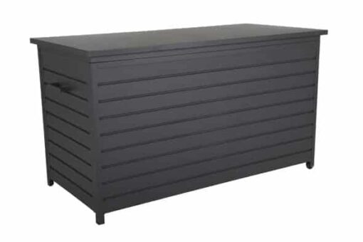 Praktiskt dynlåda av aluminium. Ett perfekt, låsbart förvaringsutrymme för kuddar, dynor och allt du är rädd om på uteplatsen. Med sitt plana lock dubbeljobbar denna möbel även som avställningsyta för sommarbuffén eller en bukett sommarblommor. Hjul på ena sidan gör den enkel att flytta dit du behöver den.
